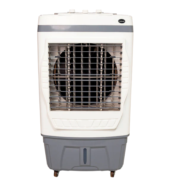 The Canon ROOM AIR COOLER Model: CA-5500 AC is engineered to provide efficient and powerful cooling for your living space. It boasts an ample 70-liter water tank capacity, minimizing the need for frequent refills and offering extended cooling periods. The cooler features a large 18-inch blade size driven by a 3-speed front fan, ensuring a powerful air throw that circulates cool air effectively throughout the room.